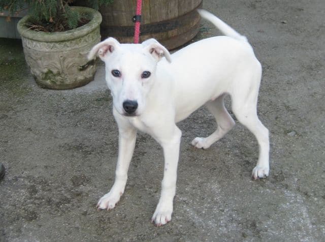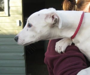 Lovable Laddie – When a stray dog comes in to us there is always a period of time when we evaluate them, assess their personality and find out if they have any health problems. Laddie, a whippet x shown above, looked fine except for being very thin and underdeveloped. He certainly has a lovely temperament and is a real fussy, friendly boy. He’s between four and five months old and when he first arrived he slept for five hours non-stop. We were worried until he woke up and said ‘where’s my dinner?’