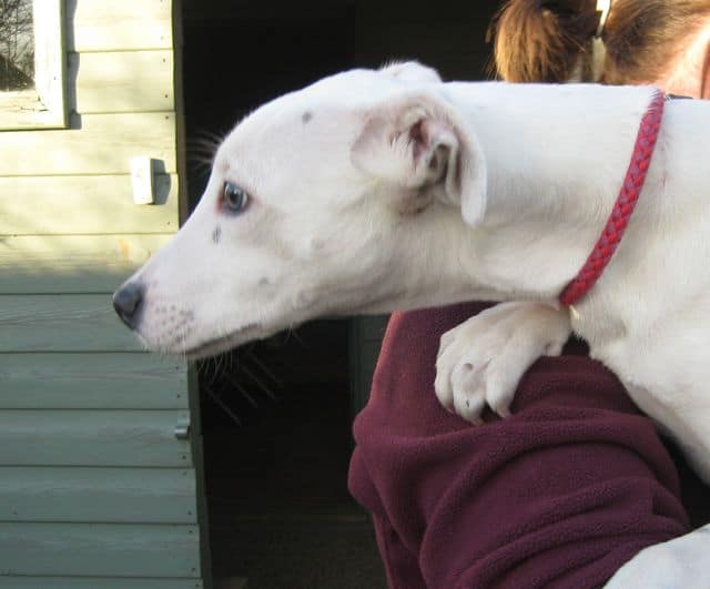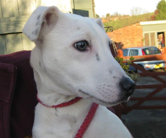 Because he is so alert his deafness doesn’t seem to bother him. He’s watching you all the time, looking for fuss, play, walks, titbits so he doesn’t miss a trick. When he’s asleep it’s a different matter. You have to wake him if you want his attention! We let him sleep as much as he likes though as he was so exhausted when he first came and he is a growing boy.