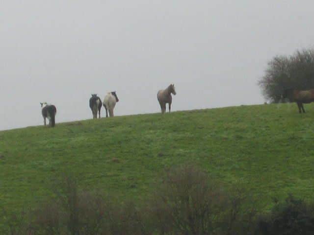 Peel loved our rides across the moor and used to stride on with ears pricked and a spring in his step. This particular early autumn day was fine and crisp with a blue sky and not a cloud to be seen. The moor could be unpredictable though and as we went further on the ancient roman road a sudden mist came down and shrouded the heather. It became damp but although visibility was down to a few yards i wasn’t worried, we knew the way well enough. Peel had a better sense of direction that me and I thought there was little chance of getting lost. Still, it was a bit eerie and I began to have a sense of unease. Peel started champing at the bit and skittering sideways. I thought he was getting spooked by the mist.