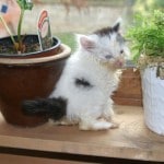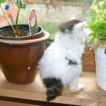 We’ve had a really frail kitten brought in. She was found in a garden so we’re wondering if she was from a litter of a cat who is living wild. Sometimes cats move home and maybe this little one was left behind. We’re hand feeding her, she only takes a little at a time, she is always ready for food but then she gives up after a few minutes. We’ve called her Daisy, she was found in a garden on the lawn and she’s just like a little wildflower. She feels so light and frail, it is a miracle she has survived so far. Daisy loves to be cuddled and has a heated pad for when she goes to sleep. Getting food and fluid down her is tricky though and she is the messiest feeder ever. All she wants to do is suck and as yet she can’t get the hang of artificial feeding, the food goes everywhere. I’m going to try and find a mommy cat to foster her.