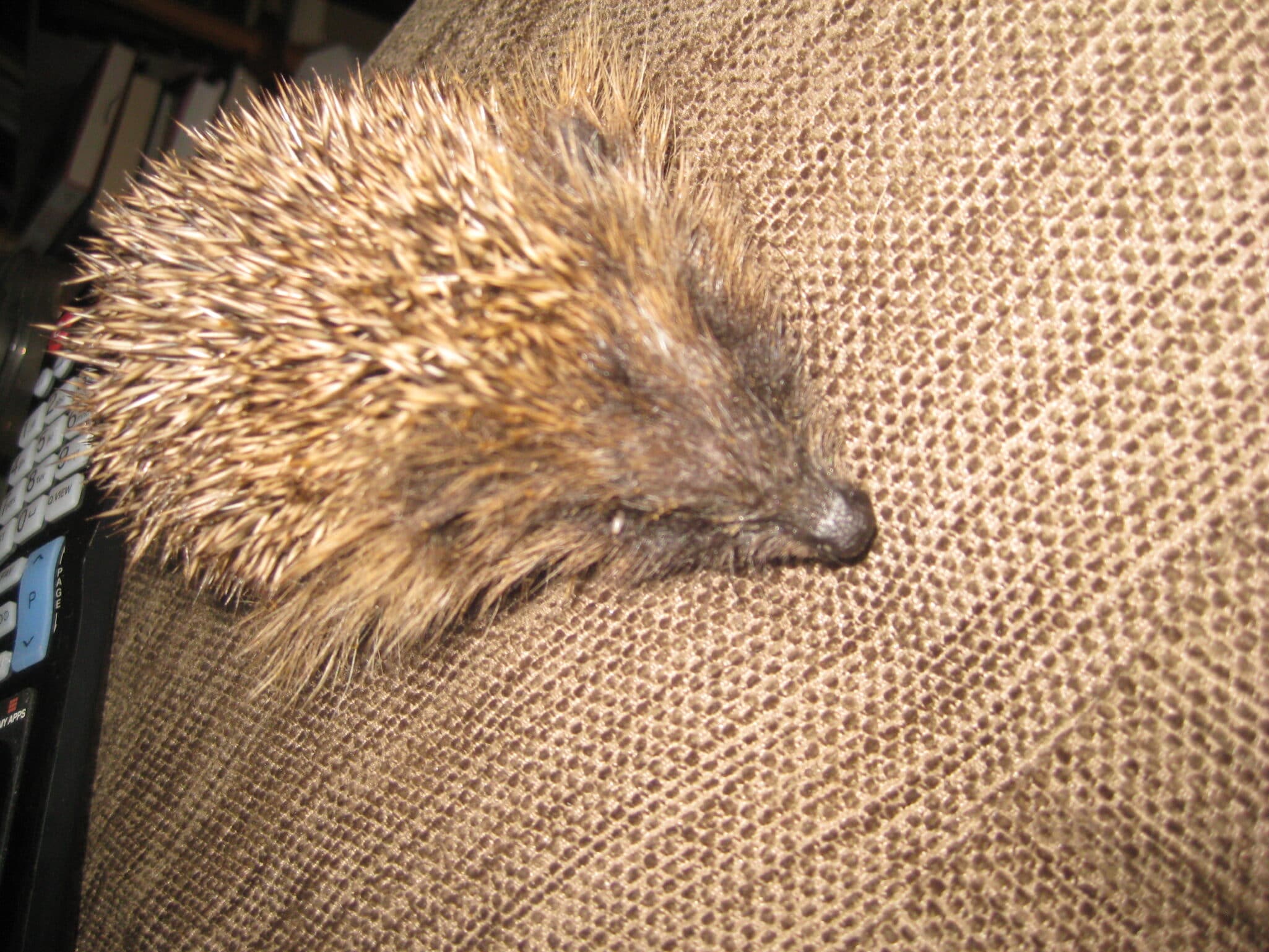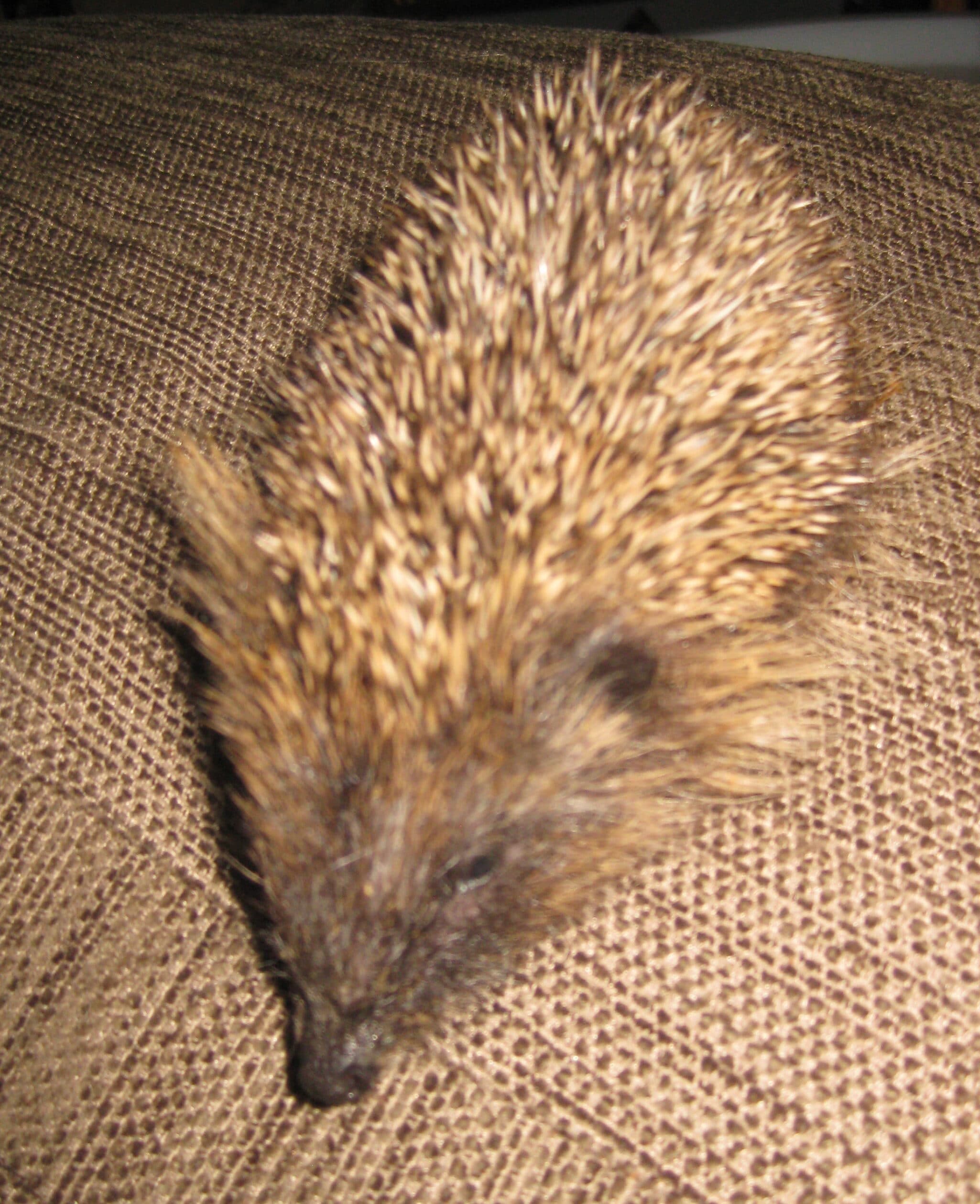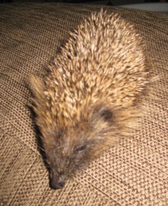 This little chap was rescued in the nick of time from a busy road. His mum wasn’t so lucky and was run over by a car. Many thanks to the kind people who brought him in. He’s a bit older than our other babies although he’s still a youngster and is eating quite well. He has a very sad face and isn’t so keen on being handled as yet. We’ve called him Mr.Fluffy because he has an unusual fringe of fur all round his body and in tufts on his face. He is also much darker in colour on his face and his eyes are open. He was quite scornful of an offered bottle – I’m much too grown up for that – he told us!