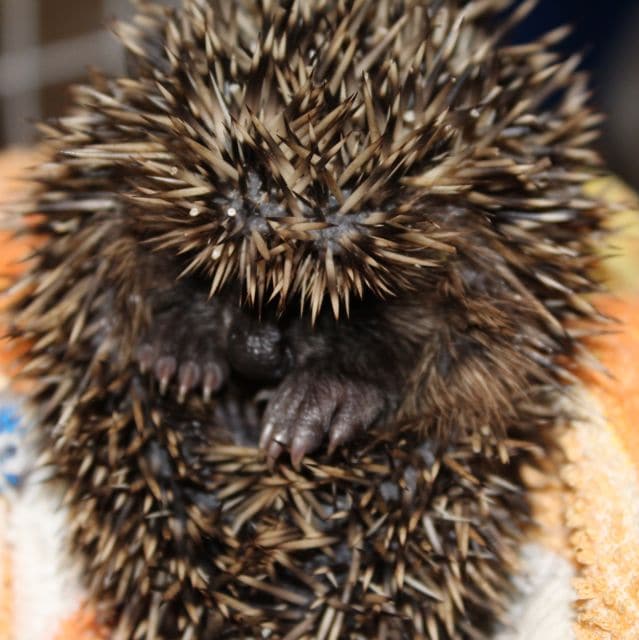 The first night is critical and amazingly they survived and even perked up a bit by next morning. When hedgehogs curl up into a ball it is a good sign, that things are getting back to normal and they have their strength back. We’ve stopped the baby bottles now as they are nibbling at food and lapping their milk up. We’re still keeping them warm and it will nr a while before they can manage without heat. Sleeping, eating, drinking, being checked over and all is well – so far so good.
