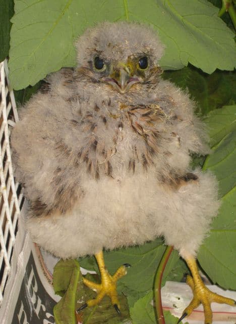 A good feed makes all the difference and Kes, our baby kestrel is looking much better. He’s still frightened and wanting his mum but he is eating and that’s the main thing. His beak opens wide and he gulps down the slivers of meat hungrily. He’s also had some egg yolk and it was obvious that he enjoyed that. Sticking up for himself is still in his mind and when we attempt to pick him up to start to feed, he leans back and strikes out with his feet. At this stage it doesn’t hurt and is easily avoided, it would be a different thing if he was adult. You need a leather glove to be able to handle a full grown kestrel, their talons pierce the skin without them even thinking about it.