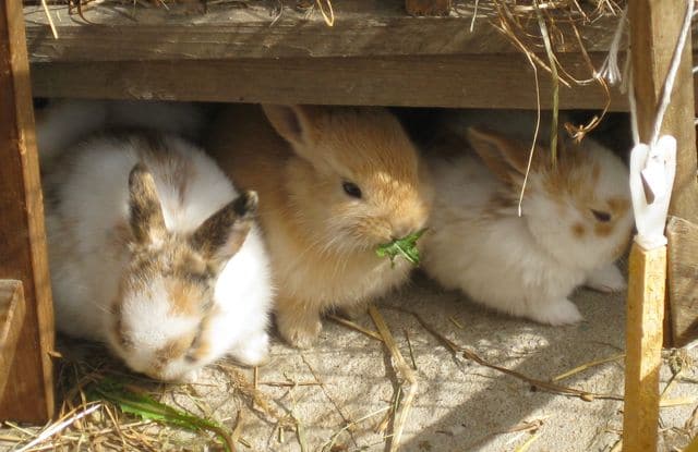 Rabbits need plenty of room with a spacious hutch or a shed is even better. They like to jump and always surprise me with their agility – they can really jump and love to sit on top of their hutch. It must be very frustrating for them when they are kept inside a hutch and don’t have a two storey condominium. The parents spend most of their time in their high-rise apartment.