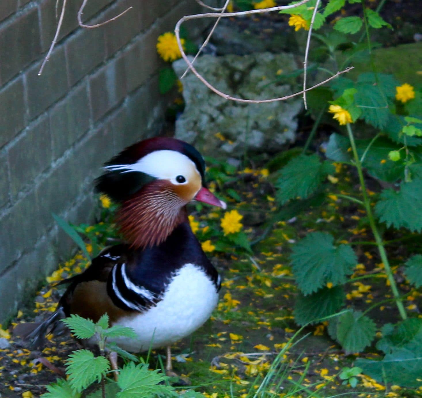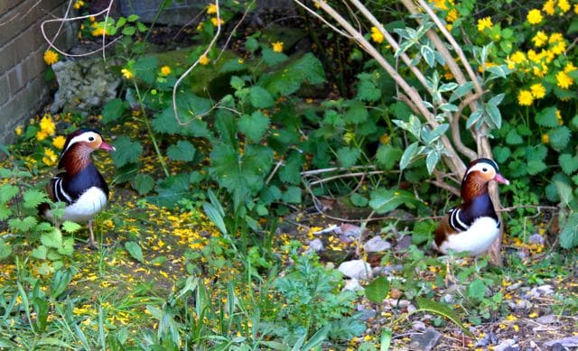 We had two mandarin drakes brought in last week. They are still settling down, a bit shy in their new quarters, they have a hut to go in and a big paddling pool – no running water unfortunately. They are brothers and from last year’s hatching so they are best friends with each other. Their colouring is superb, these birds are living works of art!