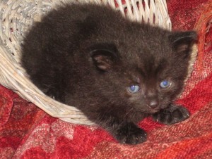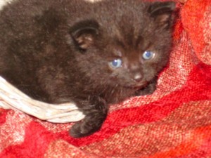 We’ve called him Jet, although it’s a good name from the colour point of view (he’s black all over) it doesn’t seem to reflect his personality at the moment. He is a placid little kitten and more of a cling-on than a whizzing about type. It will all change as he gets older, I’m sure.
