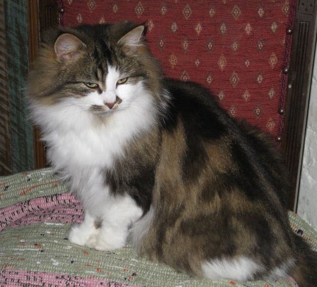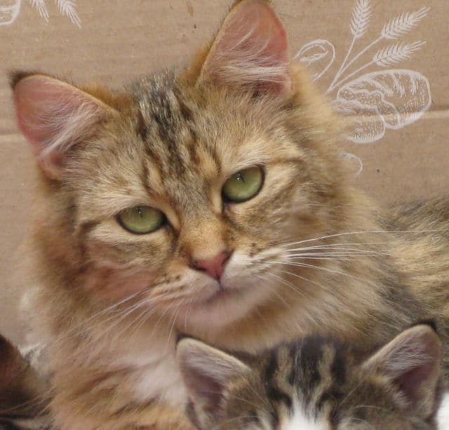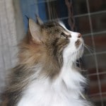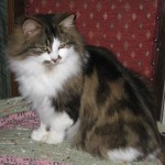 This is Daphne, who is approx. 6 years old. She is loving and good natured, a real lady and a fussy eater. Daphne came in as a stray but never wanted to be re-homed, she bonded with us from the start and decided she’d like to stay here. She is especially beautiful and has a placid personality. Although she is long haired she is a fastidious cat and manages to keep herself free of knots. Daphne has had kittens in the past but is now spayed.