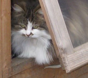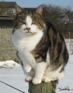 Myrtle, like most of the other resident cats, loves to perch on the top of a fence post. What is it about sitting on the tiniest area that is so attractive to a cat?