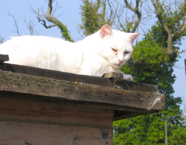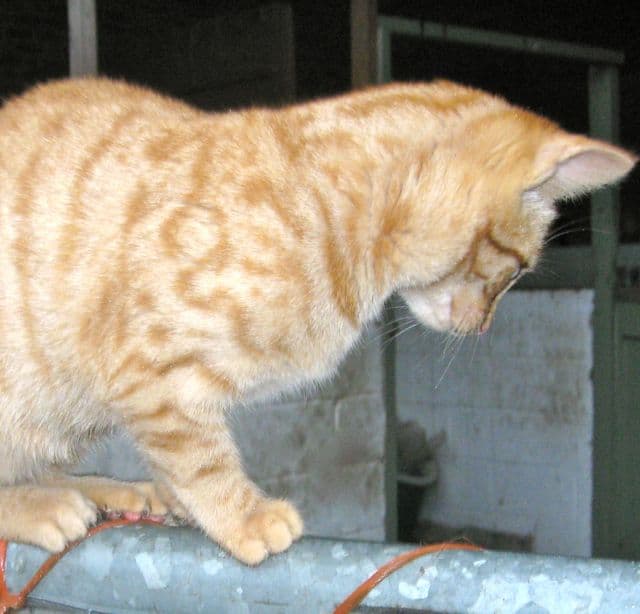 Why balance on the top of a metal gate when it’s open? Tiffy loves to climb and whenever she sees a thin, narrow, high and dangerous ledge, she’s on it! Wood or brick would be easy but metal? That it’s so slippery doesn’t faze her a bit. The feline sense of balance is amazing, we have high beams in the barns and it’s not unusual to see one or two of the cats perching up there to get a good view of the world below. Eventually they tiptoe confidently back to the wall and descend via the hay bales. Their ability to get up and out of the way is a good survival mechanism, they are out of the way of predators and know they will be safe. Thank goodness that foxes and dogs can’t climb!