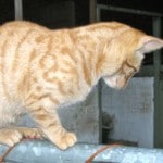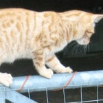 Tiffy put on a real performance on the gate – she walked across, turned round, sat down, stood up and made sure we were fully impressed before she jumped down. Cats need their tails to balance well, it must be hard to be a Manx (tailess) cat. If you don’t have a natural high wire facility in your garden, why not make one? A narrow plank fixed between securely between a fence and a tree for example, will provide good exercise and hours of fun. The more natural the environment the happier your cat will be. There are high rise cat climbing frames available for indoor use if you have the room. Cats love them. It’s the height they yearn for, a small frame on the floor just isn’t the same.