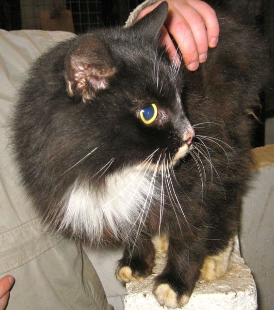 Sox has now made a good recovery and has been re-homed with lovely people – thank you. From the look of misery and bewilderment on this poor cat’s face you can tell she’s suffered an ordeal. Sox is still frightened and disorientated after being locked up in a flat when her owners moved away. With no one to feed her she was left to starve. Sox is in a bad way with multiple health problems, she’s also very thin and flea ridden. When she was found she was brought in to ua. Her rescuer is a very kind and caring cat-lover who was especially concerned for her well-being.