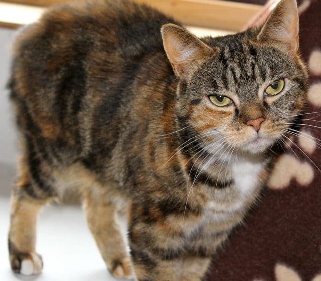 This is a stray cat who used up one of her nine lives last week. She was seen being chased and shot at by a gang of lads with air rifles and only just rescued in the nick of time. This lucky girl cat was taken in to Carrick Vets to be checked over and fortunately none of the pellets had hit her. Apart from being traumatized and very thin, she is alright. We’ve called her Tigerlily and a sweeter cat would be hard to find. A big thank you to Carrick Vets for looking after her so well and for vaccinating her before bringing her in to us.
