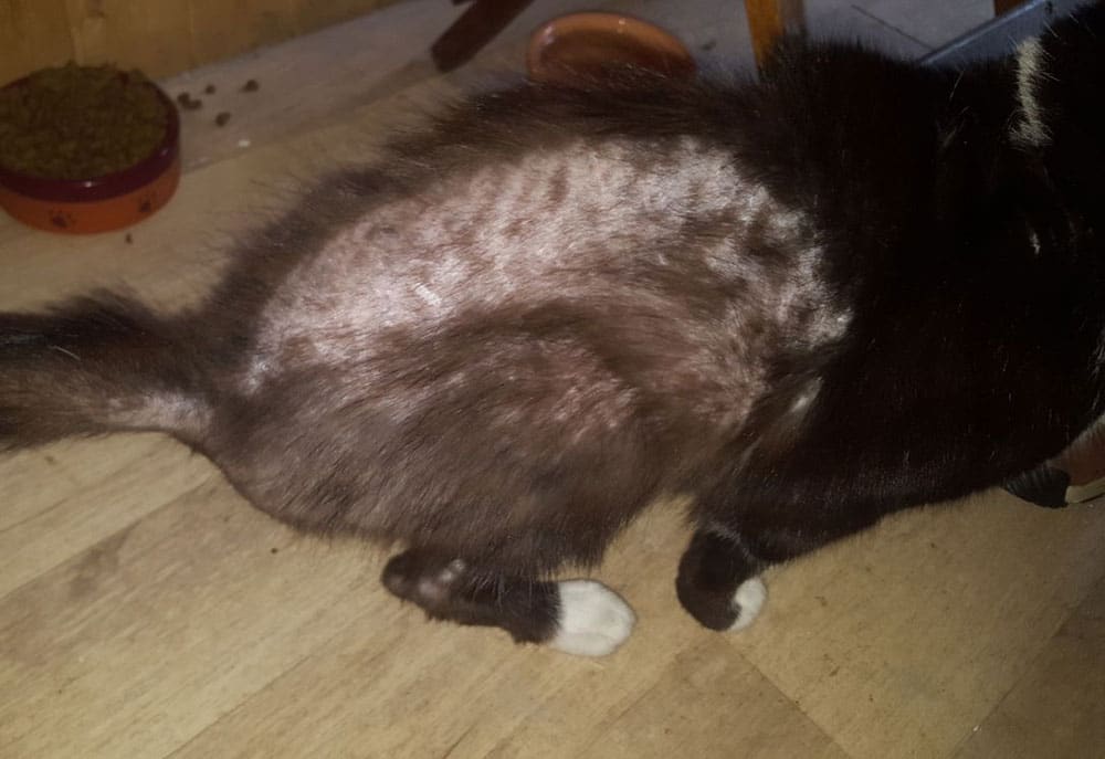 The cats were in an awful state with missing fur, ear mites and scabs. They are most likely full of worms and we will treat them as soon as they have recovered a bit. Despite what they have been through, they have a good fighting spirit. Dumping cats this way is a horrible thing to do and these cats deserve a second chance.