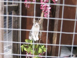 Many of our cats go ‘walkabout’ during the day and it’s ‘cat’s law’ that it’s impossible to find them if someone arrives to see them with the prospect of a home. We do have lots of adult cats waiting for new homes. When they’ve been here for a while and have settled down we let them go out for a stroll during the day. No matter how big the pen, or even if it has a large run attached, it isn’t good for a cat to be kept in for long periods. Unless they are running and climbing and chasing leaves, they become weak and get muscle wastage. Fresh air is good for cats as well as people.