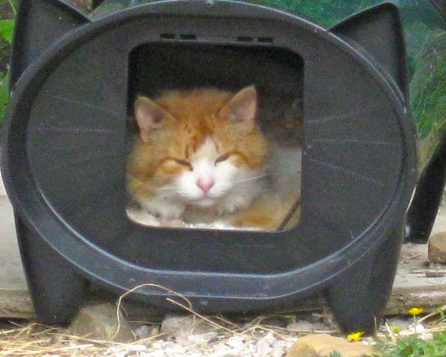 If you thought that Katcabins were just for winter use you’d be wrong. Our cats love them all year round. It’s really warm today but the moment I put this katcabin down, one of the cats was in it. Getting them to come out is sometimes a problem, we don’t have enough to go round and they hate to lose their place.