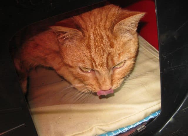 We needn’t have worried. The sanctuary cats ADORE their new katkabins. We didn’t have to show them how to use them or which was the way in or how to negotiate the flap. They took one look and zoomed inside and snuggled down – aaah – that’s lovely!