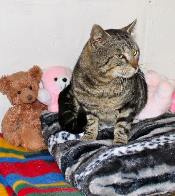 More cats than ever have been brought in recently and we urgently need cat food and funds for vet fees – we’ve been at the vets nearly every day recently. This is Denby who was brought in as a stray. The lady who found him told us that he sat out in the rain meow-ing to be let in. He is a lovely, friendly cat with excellent markings and nice golden eyes. Denby is well behaved, clean and litter trained. He isn’t very big – such little legs! How old is he? Between 2 and 3 years we think. He is available for adoption so if you’d like to come and meet him please get in touch.