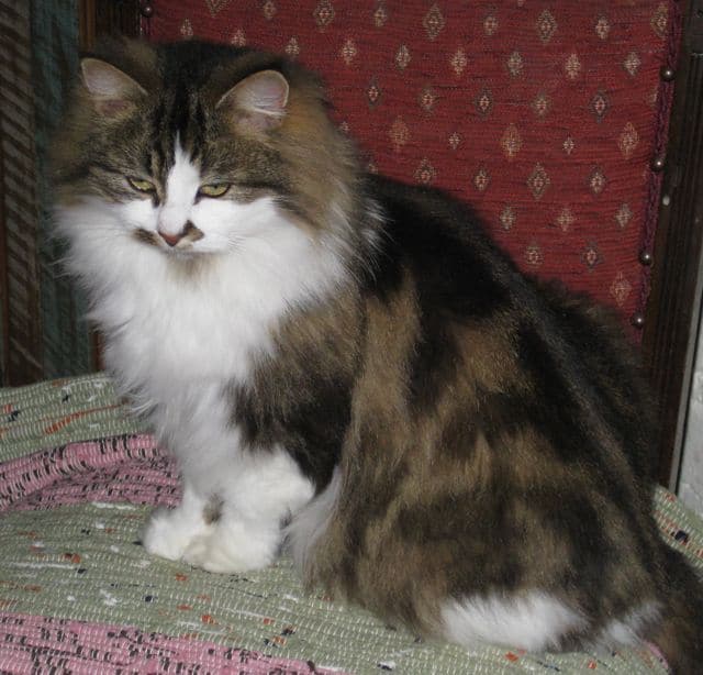 Delilah came in to the sanctuary as a half grown kitten and was already in kitten herself when she arrived. She proved to be a wonderful mother although she has been spayed now. This lovely lady cat has a temperament to match her looks, she is good-natured, happy and gets on well with all the other sanctuary residents – even the dogs.