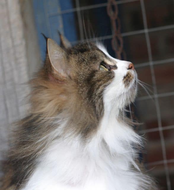A few drops of salmon oil on her food most days helps to keep her glossy and her beautiful fur long and lustrous. Delilah is a fish eater and looks horrified if you offer her a meaty pouch. She will wuffle up a bit of finely chopped chicken though from time to time. Royal Canin biscuits are her preference and she has the ones specially formulated for cats with a long coat.