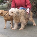 Scruffy and Sally have been together all their lives so we are looking for a home where they can stay together. These two perfect pals are middle aged, both girls and very sedate. They have perfect manners and are easy to care for and a pleasure to know. Sadly their owner has been admitted to a home and so cannot care for them any more. Sally is the smaller, tan coloured and smooth coated, Scruffy is a shaggy dog story and is going to have a shampoo and set in the near future. Scruffy has had some damage to the skin on her back and has a bald patch which is a very old injury/condition. It does not bother her except that she needs a coat in winter.