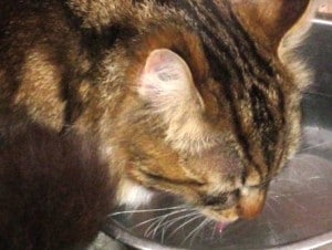 Sometimes cats and dogs prefer to drink from puddles or containers in the garden. This is fine for most of the year, when the weather is cool the water might look cloudy but it shouldn’t be toxic. When the hot sun shines, everything changes and within hours a green slime can develop. If your cat or dog or rabbit, drinks slimy water they may become very ill. You’ll need to take them to the vet. Green slime on water or dishes is dangerous and can even kill. Keep containers clean and in the shade and remove them immediately if you see any green tinge on the side. The colouring is caused by algae which multiply rapidly. Toxic stuff. Even letting your dog splash around in a pond covered in green slime can make him very ill. Seek advice from your vet if this happens. A check up is better than a sick pet.