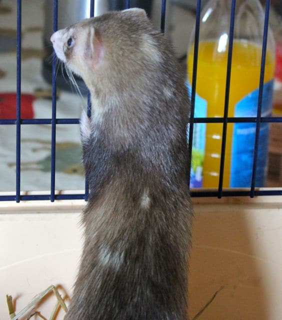 We’ve had a busy weekend with cats, dogs being brought in and then our last rescue was a ferret. He’s a handsome youngster (or a she, we’re not on such familiar terms that we can find out as yet!) past the baby stage but not grown up yet. He has a lovely coat with peach, pearl gray and white patches and the lovely inquisitive ferret face – they always seem to be asking questions – where’s my tea, can I come out, will you pick me up ……. etc. etc.