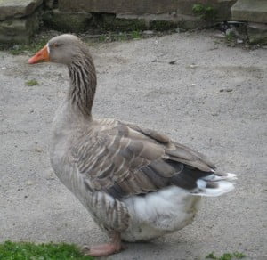 A sad end this week for Greta, our lovely grey goose. I let the geese out in their compound first thing in the morning, they don’t go out into the field until after breakfast. I am always worried about the danger from foxes, there are so many around here. If you think a goose is safe behind a strong wire and plank fence, then you are wrong. By the time the geese had their breakfast, it was too late. The fox had torn the wire away and within a few yards of the house, had ripped poor Greta to pieces. The ganders had tried to protect her and Gregory now has a badly damaged wing. Although they are big and strong, they are no match for a hungry fox.