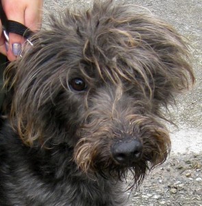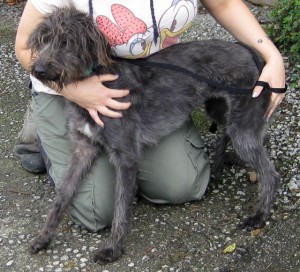 Pippa has come in as a stray, she is a lovely little dog but is in very poor condition. Her coat is matted, especially on her head, her skin is dry and she is much too thin. Has she been properly exercised? There is no strong muscle development on her frail legs. Pippa has a very affectionate nature, she is a sweet and well behaved and loving dog and is making a good recovery. All she needs is plenty of good food, fresh air and light exercise (till she gets built up again), regular grooming and lots of t.l.c. What sort of dog is she? Looks like a lurcher – perhaps a whippet x bedlington? A sweet girl – we’ll make sure she gets a wonderful new home.