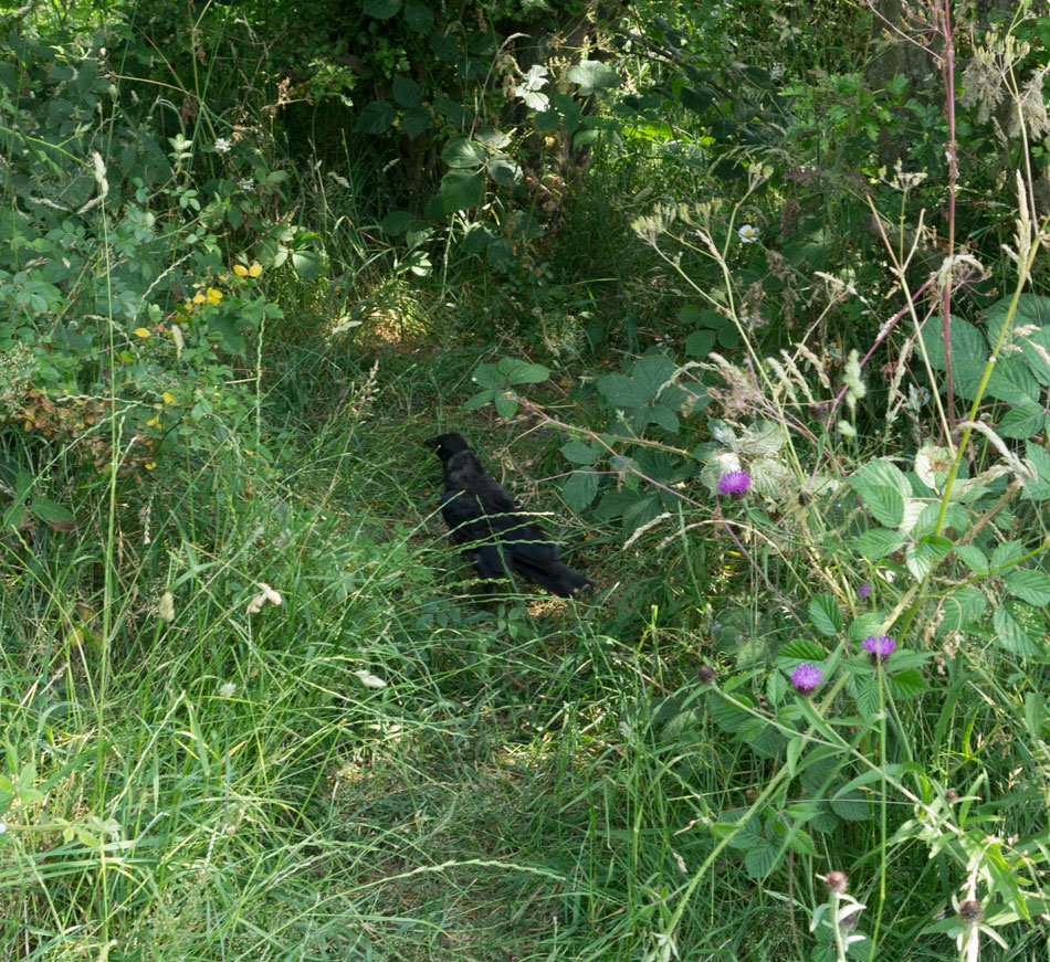 We didn’t want to have a tame and captive jackdaw staying with us forever though. It would have been lovely for us but not the best life for him so we gave him the chance to be free again and this time he took it. Jackdaws are exceptinally fine birds, they relate to humans and like all the same glittery gizmos that most of us like. They are inquisitive and sociable and we hope that Jimbo soon finds another Jackdaw to fly with. He was soon up and away and getting his bearings before finding a tall part of the hedge to perch in. He can feel the breeze in his feathers and smell the wild flowers and elder blossom. Every bird a small miracle – keep safe my friend.