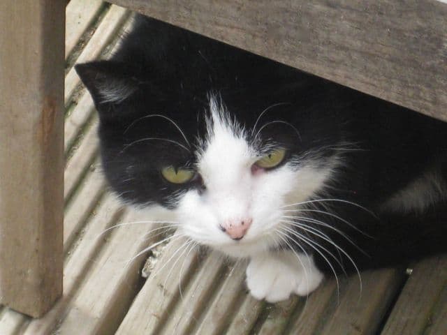 Felix is a handsome neutered male cat, with a white face, big and pristine socks. He is a laid back and friendly chap who is not used to going outside. Felix is easy to look after, he is a very clean cat and likes to eat biscuits, we’re giving him Royal Canin at present.