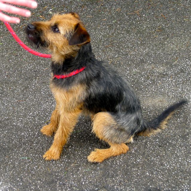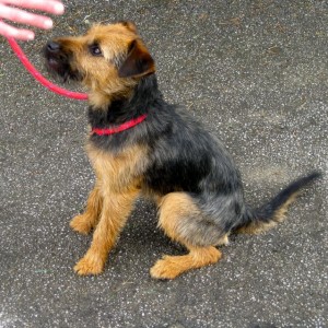He’s quite small and with the typical Patterdale ‘broken’ coat of tan and black. Buster loves to go out for walks and has a playful personality. He’s around three years old and has been neutered and is fully vaccinated.