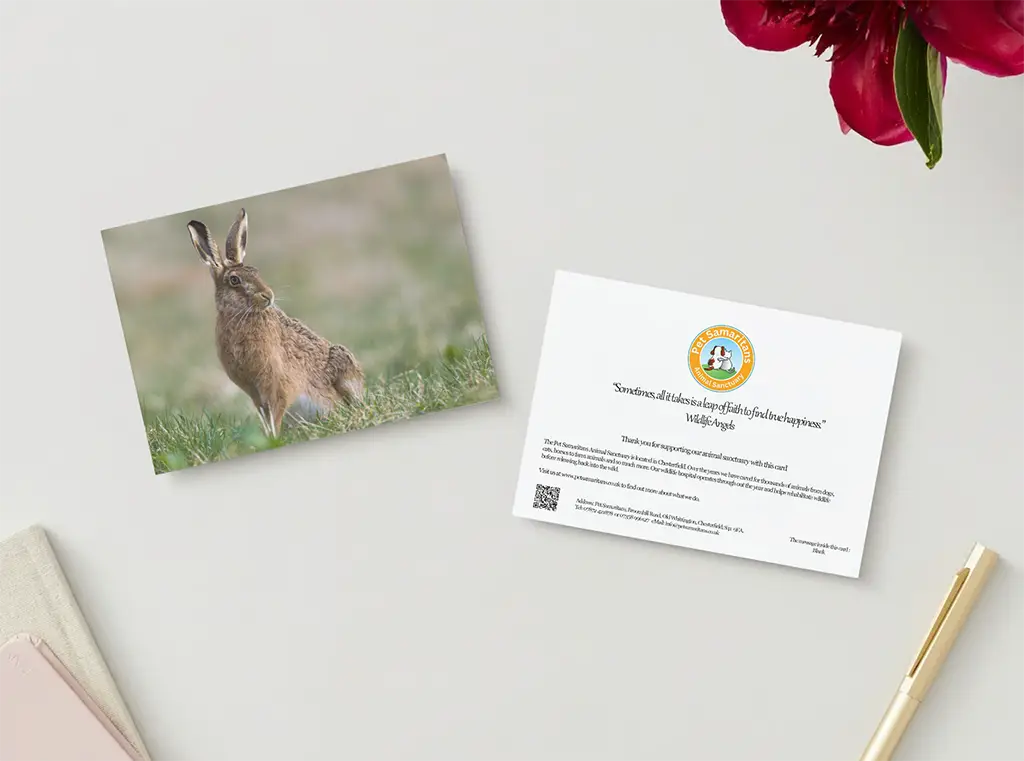 Sold in aid of the Pet Samaritans animal sanctuary. Sales of this card help support our wildlife hospital.