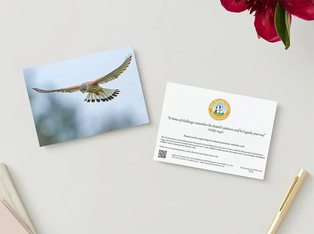 Sold in aid of the Pet Samaritans animal sanctuary. Sales of this card help support our wildlife hospital.