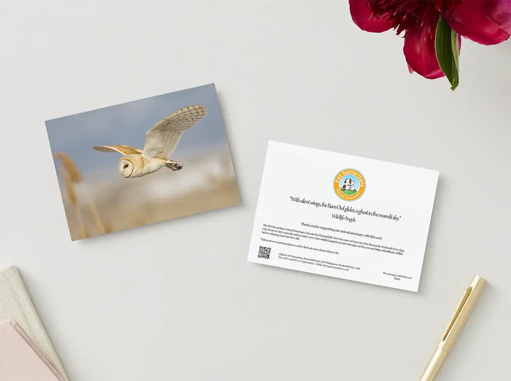 Sold in aid of the Pet Samaritans animal sanctuary. Sales of this card help support our wildlife hospital.