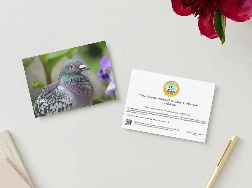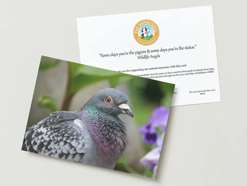 Sold in aid of the Pet Samaritans animal sanctuary. Sales of this card help support our wildlife hospital.
