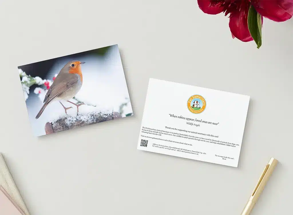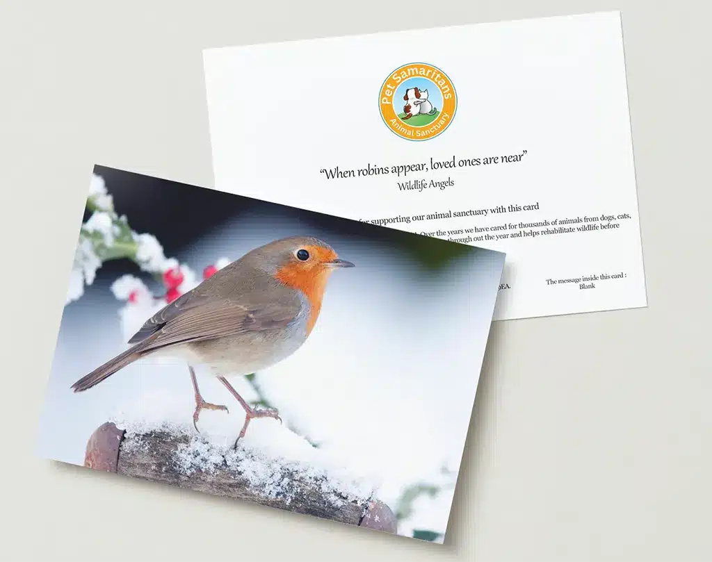 Sold in aid of the Pet Samaritans animal sanctuary. Sales of this card help support our wildlife hospital.