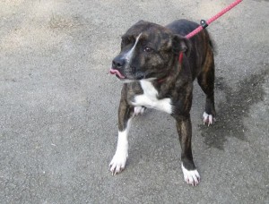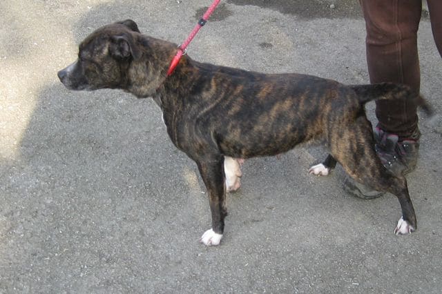 Mmmm! That was good! Gina is a small staffi with little legs, a smart shiny brindle coat and always a smile on her face. She likes to go a walk and is well behaved and very clean, she loves people.