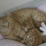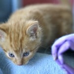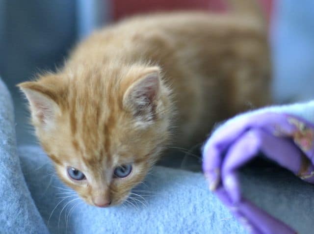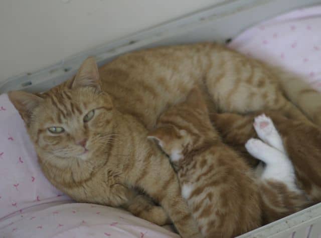 This is the little girl cat who is now starting to explore. She is independent for a while and then she runs back to mommy and her brothers for a cuddle.