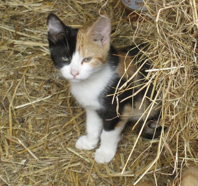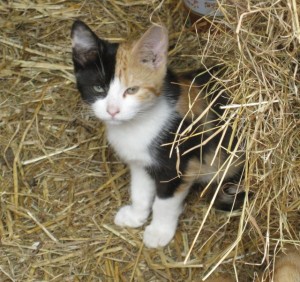 Normally our barns are full of hay by now. This kitten had made a den among the bales last year. Now we have no hay at all. The seemingly endless rain means we can’t get on to the fields to make hay. The ground is waterlogged and although the grass is taller than ever before, we need a least a fortnight’s continuous dry hot weather to get the hay. Once the grass has been cut, it is chanelled into rows and then turned until it’s dry and ‘crackly’ – then it’s hay and we can bale it. If it’s baled white it’s still green and damp it will go musty and be unfit for the animals to eat.