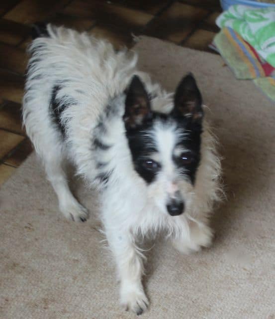 Cristo is a fragile little Chines Crested who is adorable. He was in a terrible state when he first came in and it took months to get him right, he was emaciated and terribly neglected. He’s like a little pudding now, plump and soft and loving, he never wants to leave us, he’s a real sweetie and curls up in the baskets with the cats. He does have heart problems so we make sure he has a quiet life and he’s fine with that.