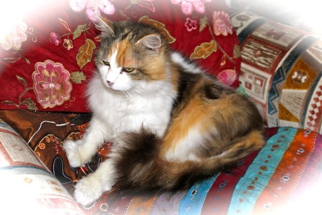 It’s Mischa’s birthday, she’s 15 years old today and still as beautiful as ever. She is actually a bit older because we count birthdays according to when cats come in. Mischa was found in a salt box at the side of the road with four kittens. She was a devoted mother and we kept one of her kittens with her (re-homed the rest) to keep her company. Mischa and her daughter Myrtle are still best friends and both have a loving nature. Visitors to the sanctuary will be used to seeing Mischa who is always around Reception and on ‘duty’ as one of our greeters. She loves a fuss!
