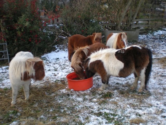 The ponies don’t like the snow and have extra feed to make up for the icy grass. All our water pipes are frozen in the ground and we are carrying water to all the animals. Birds too need water, don’t forget to put some out for them. Strays still come in at Christmas and we are in urgent need of dog and cat food. Thanks to the pet samaritans who bring cans and pouches in – more please if you can manage it. Every day we have to fill the feed bowls and we’ve had some very thin dogs in recently. Thanks also for the carrots, the ponies and goats love them. [donate]