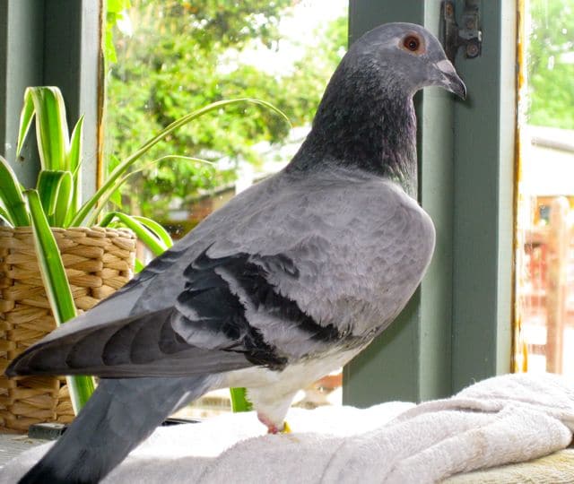 Homer is much better and we are letting him out of his cage so that he can fly around. He’s a lovely bird and, as he’s a racing pigeon, he is used to being handled. As he’s been on the sick list for a long time he needs to build his wing muscles up and get ready for the big flight home. Whilst he’s walking he lifts one of his legs up – it still hurts, so that’s it, he isn’t ready to go yet. A small improvement every day but he needs to be fully fit before he takes his 100 mile flight home.