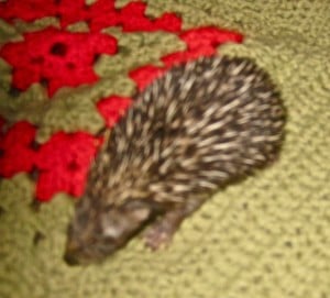 The baby hedgehogs are still having their bottle feed every two hours and they are much easier to handle now. Three of them, Biggie, Huffie and Woody, have their eyes open. The two little ones are obviously much younger and their eyes are still tight shut.