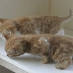 Miss Independent likes to explore – all kittens show different personalities from an early age. This little girl is confident and ready to see the world. Her brothers are still mommy’s boys but sometimes they want to follow sis around ……..shall I? Shan’t I?….