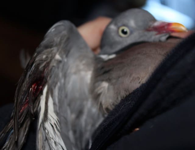 Yet another terrified bird with a bad injury to her wing. It looks like a pellet from a gun, why would anyone want to shoot her? We’ve cleaned her up and given her medication, it’s a nasty wound and doubtful that she’ll ever fly again.