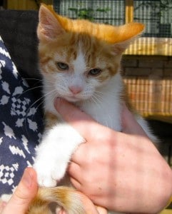 Re-homed – thanks to the caring family who have given this lovely kitten a new home – Jazz is a pretty little kitten who is just ten weeks old and will be having her first vaccination this week. It’s unusual for ginger cats to be girls but this one is especially feminine both in looks and nature, she is a real little lady and very sweet.