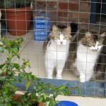 It’s all about providing escape zones so that if one of your cats feels threatened there is somewhere safe to hide. An outdoor enclosure is a great idea if the budget will run to it. These aren’t difficult to make, the wood can be fairly light but they do have to be meshed in including the roof. A cat patio gives your feline friends access to fresh air and a view of the outside world. When the cats have settled down together, you can open the door and let them go wild-wooding together. Sharing lots of space is the key to cats getting on with each other. If they don’t have enough room to find their own retreat they can suffer chronic stress which may result in disease – idiopathic cystitis is one likely outcome.