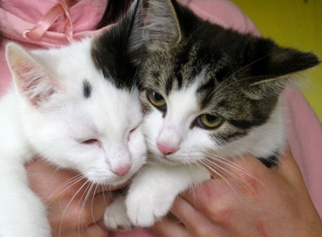 These two little orphan kittens have become ‘forever friends’ – they love each other. Melissa is on the right and Moonpenny is the white one on the left. Both have similar temperaments, they are very loving and a bit shy until they get to know you. Cats are a species that seem to be particularly choosy about their friends – when they like another cat it does seem to be a lifetime choice. Cats who are friends and loving together will stay the same for the rest of their lives.