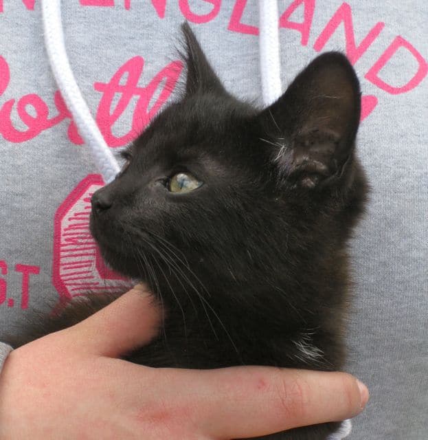 Morris recovered from his vet trip quite quickly and was soon playing and demanding food when he was home. He has kitten pouches and kitten biscuits and loves a piece of raw meat to chew on too. Bobo went for a lie down when she arrived back, but she soon recovered and was playing in her pink tunnel which is her favourite toy. Bobo likes kitten biscuits best of all and is not at all greedy. Both of the kittens are fully litter trained, very friendly and sociable and are ready for adoption now they’ve had their health check and 1st vaccination.